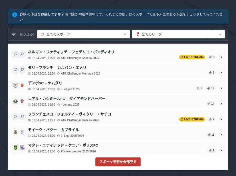 そんなBetWinnerでは、野球を含むスポーツベットに使える初回入金ボーナスや特定の試合に対するボーナスなどが提供されています。