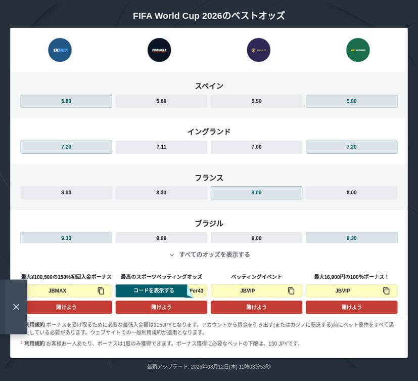 7.4 🏆 ワールドカップオッズはどこで確認できますか?